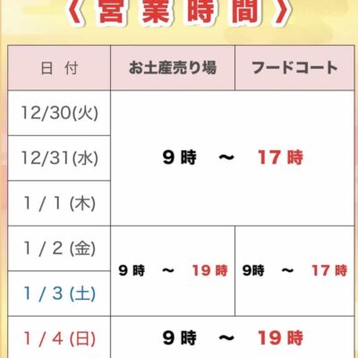 ■12月30日(金)〜1月2日(日)の営業時間
